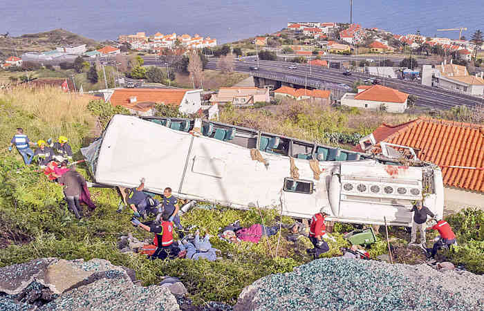 પોર્ટુગલના ટાપુના શહેરમાં જર્મન પ્રવાસીઓથી ભરેલી એક બસ ગબડીને નીચે ખાઇમાં એક ઘર પર પડતાં તેમાં સવાર ૨૯ પ્રવાસીઓ માર્યા ગયા હતા અને અનેક ઘાયલ થયા હતા.