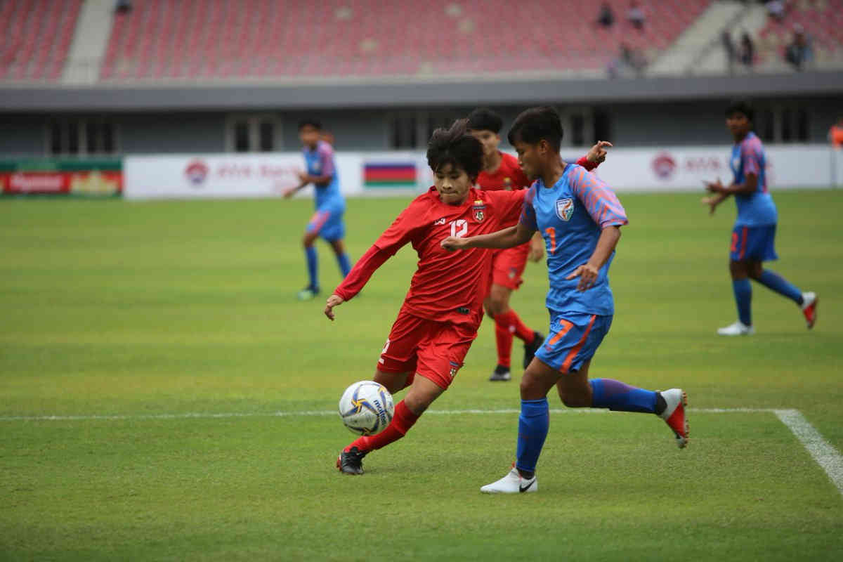 ભારત અને મ્યાનમારના ત્રણ-ત્રણ મેચમાં ૭-૭ પોઈન્ટ્સ થયા હતા. જોકે મ્યાનમારનો ગોલડિફરન્સ વધુ ચડિયાતો હોવાથી તેઓને આગેકૂચ પ્રાપ્ત થઈ હતી. તેમનો ગોલડિફરન્સ પ્લસ૮ હતો, જ્યારે ભારતનો ગોલ ડિફરન્સ પ્લસ ૪ જ હતો. ભારતને સંધ્યા રંગનાથનના ગોલને સહારે સરસાઈ મળી હતી. જોકે યજમાન મ્યાનમાર તરફથી વિન ટુને ગોલ ફટકારતાં મેચને બરોબરી પર લાવી દીધી હતી. આ પછી તેણે વધુ એક ગોલ ફટકારતાં ભારત ૧-૨થી પાછળ પડી ગયું હતુ. આ તબક્કે સંજુએ ટીમને ૨-૧થી સરસાઈ અપાવતો ગોલ ફટકાર્યો હતો. આ પછી રતનબાલા દેવીએ ફરી ભારતની જીતની આશા જીવંત બનાવતા ગોલ ફટકારીને ટીમને ૩-૨થી સરસાઈ અપાવી હતી. જોકે ટુને ગોલ હેટ્રિક પુરી કરતાં મેચને ડ્રોમાં ખેંચી હતી અને ટીમને આગેકૂચ અપાવી હતી. ભારતની મહિલા ફૂટબોલ ટીમ વિશ્વમાં ૬૨માં ક્રમે છે. જ્યારે મ્યાનમાર ૪૨મું સ્થાન ધરાવે છે.