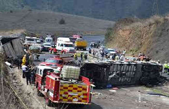 પૂર્વીય મેક્સિકોમાં બુધવારે એક ટ્રક અને બસ વચ્ચે જોરદાર ટક્કર થઈ હતી જેથી બંને વાહનોમાં આગ લાગી ગઈ હતી. આ દુર્ઘટનામાં ઓછામાં ઓછા ૨૧ લોકો મૃત્યુ પામ્યા હતા અને ૩૦ લોકો ઘવાયા હતા. અધિકારીઓએ જણાવ્યા પ્રમાણે અકસ્માત થયો તે બસમાં યાત્રાળુઓ સવાર હતા જેઓ તીર્થ યાત્રા બાદ પવિત્ર કેથોલિક સ્થળે પરત ફરી રહ્યા હતા.